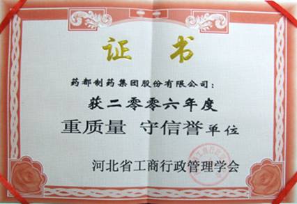 2006年2月,被河北工商行政管理协会授予“重质量 守信誉”单位。