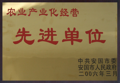 2006年3月,我公司被评为农业产业化先进单位。
