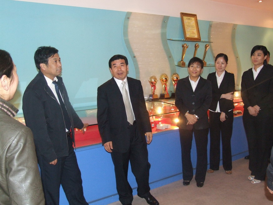 2008年4月11日,中国巨力集团董事长杨建忠、总裁杨建国带领公司高管一行8人来我集团参观访问。药都集团董事长李晓恩先生带领公司高管在办公楼前迎接巨力集团来宾,并在公司贵宾接待室向来宾介绍了制药集团的经营情况,双方围绕企业管理、发展战略等方面进行了交流。在李晓恩董事长的陪同下,巨力集团来宾参观了药都工业园区、药都制药产品展厅、成品库及厂区厂貌,并到药都集团下属企业祁州酒业参观了车间、厂区,祁州酒业总经理李义在公司小会议室向来宾介绍了本公司的经营情况。通过交流,增进了双方的认识和了解。