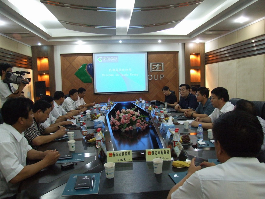 2008年7月19日,河北省食品药品监管局局长高金浩、副局长赵瑜带领省局有关业务处领导在保定市副市长孟祥伟、保定市药监局局长徐顺通及相关副局长及安国市市长张贺良、副市长张彦安等安国市相关部门领导的陪同下,来我公司进行调研工作。公司董事长李晓恩、李玲副总、邢志庄总工、董少杰副总等公司领导在办公楼前热情的迎接了省局领导,并陪同高金浩局长一行分别参观了产品展厅、中药材标本室和化验室。在公司小会议室,高金浩局长一行观看了我公司制作的企业简介、中药材标准化种植、新药研发、药都集团北泡工业园区项目建设情况等幻灯片,在此基础上,李晓恩董事长就公司发展的整体情况作了全面系统的汇报,并围绕项目建设及产业政策谈了自己的看法,张彦安副市长代表安国市政府汇报了安国药业发展的情况。围绕张彦安副市长和李晓恩董事长的汇报,与会人员纷纷发表了自己的意见,在与会人员发表意见的基础上,高金浩局长作了总结性发言,并就药都集团发展方向提出了原则性意见,具有较强的前瞻性和指导性。