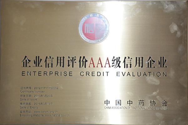 2013年3月20日,中国中药协会正式发布了关于第二批中药行业信用评价结果,我公司被评为AAA级信用企业。