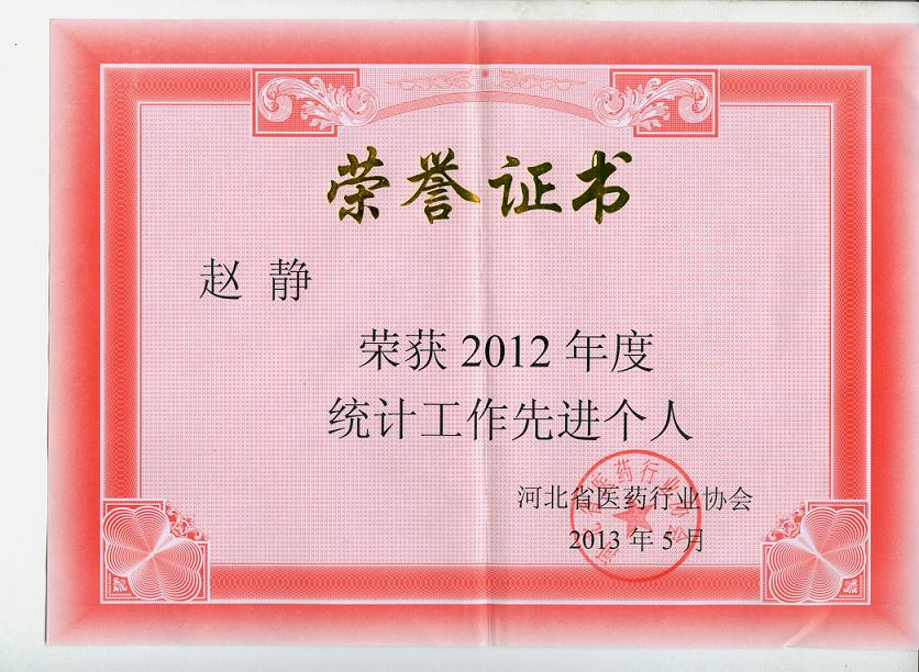 同时,会议表彰了2012年度统计工作先进单位和先进个人,我公司荣获“2012年度统计工作先进单位”称号,公司赵静同志荣获“2012年度统计工作先进个人”称号。